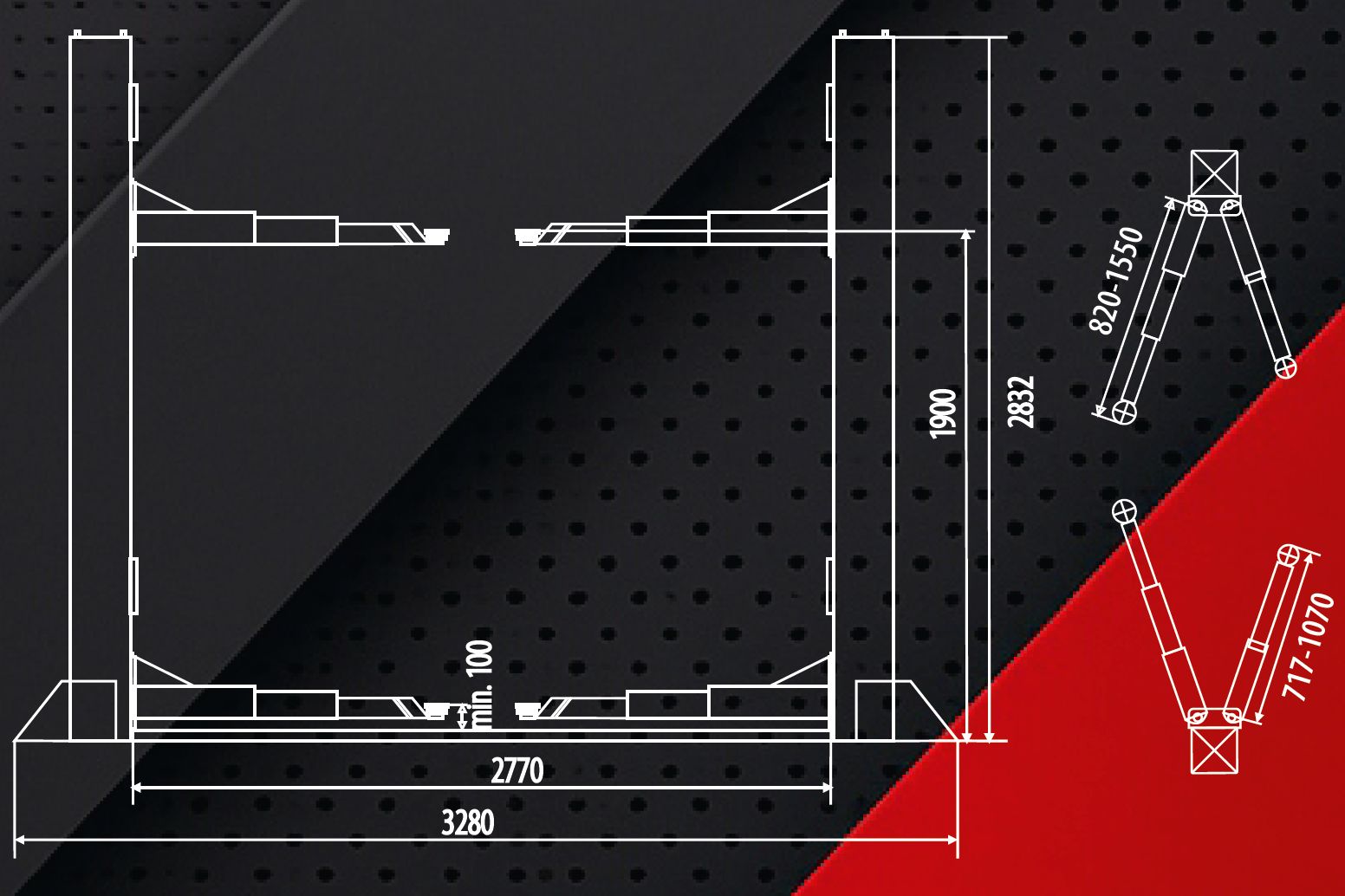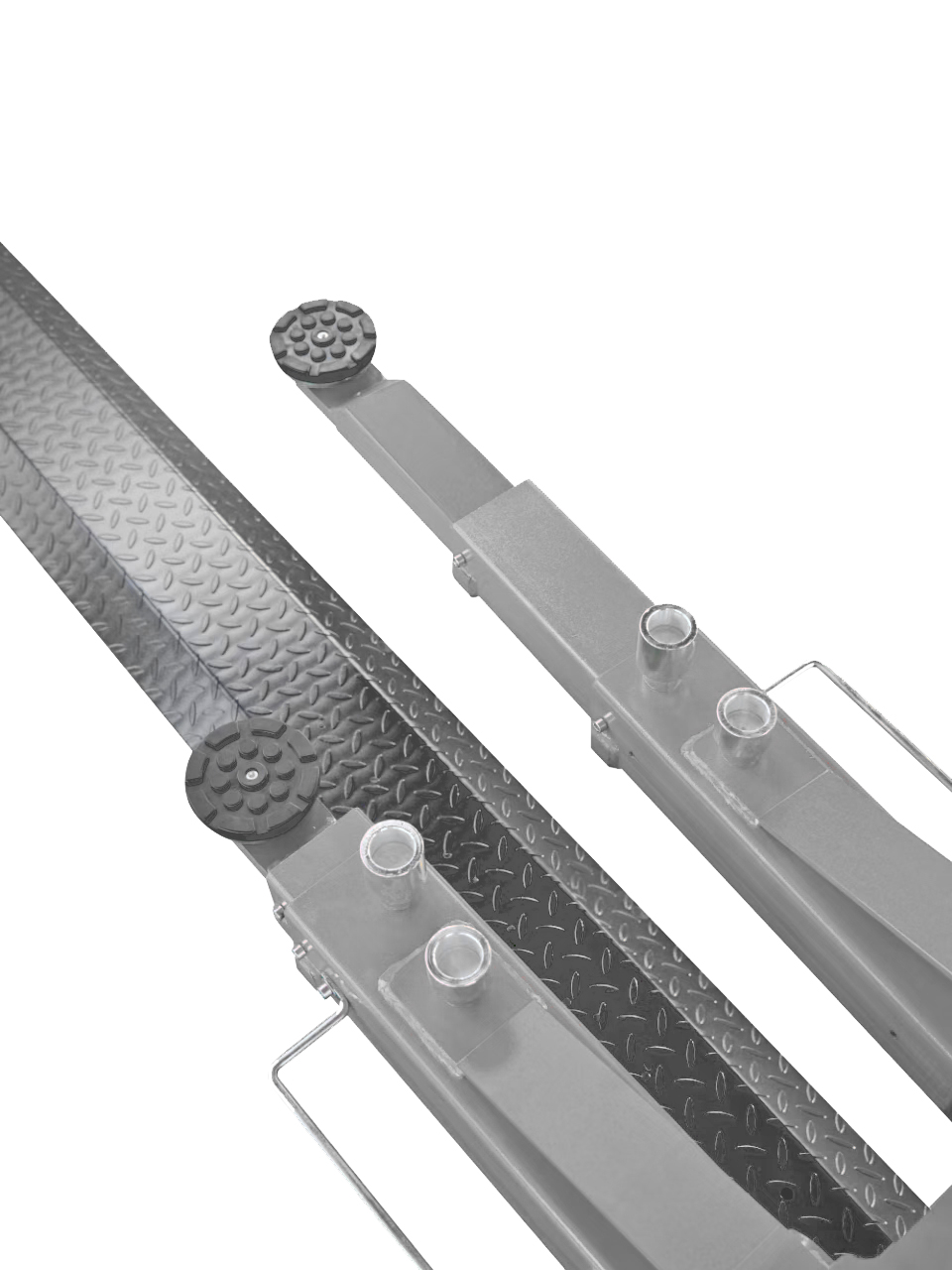 Zestaw zawiera ramiona 2-częściowe (krótsze) oraz ramiona 3-częściowe (dłuższe), co zapewnia niespotykaną uniwersalność przy obsłudze pojazdów o różnym rozstawie osi.