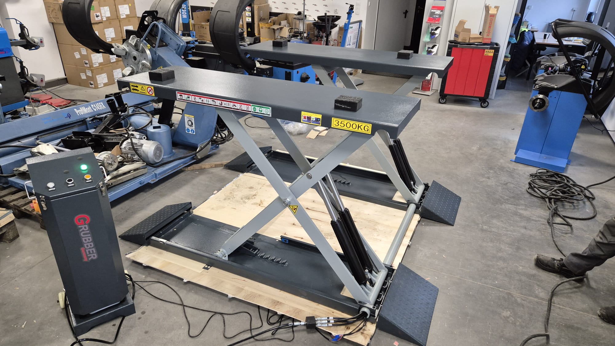 Podnośnik elektrohydrauliczny niskiego podnoszenia z możliwością łatwego przemieszczania.