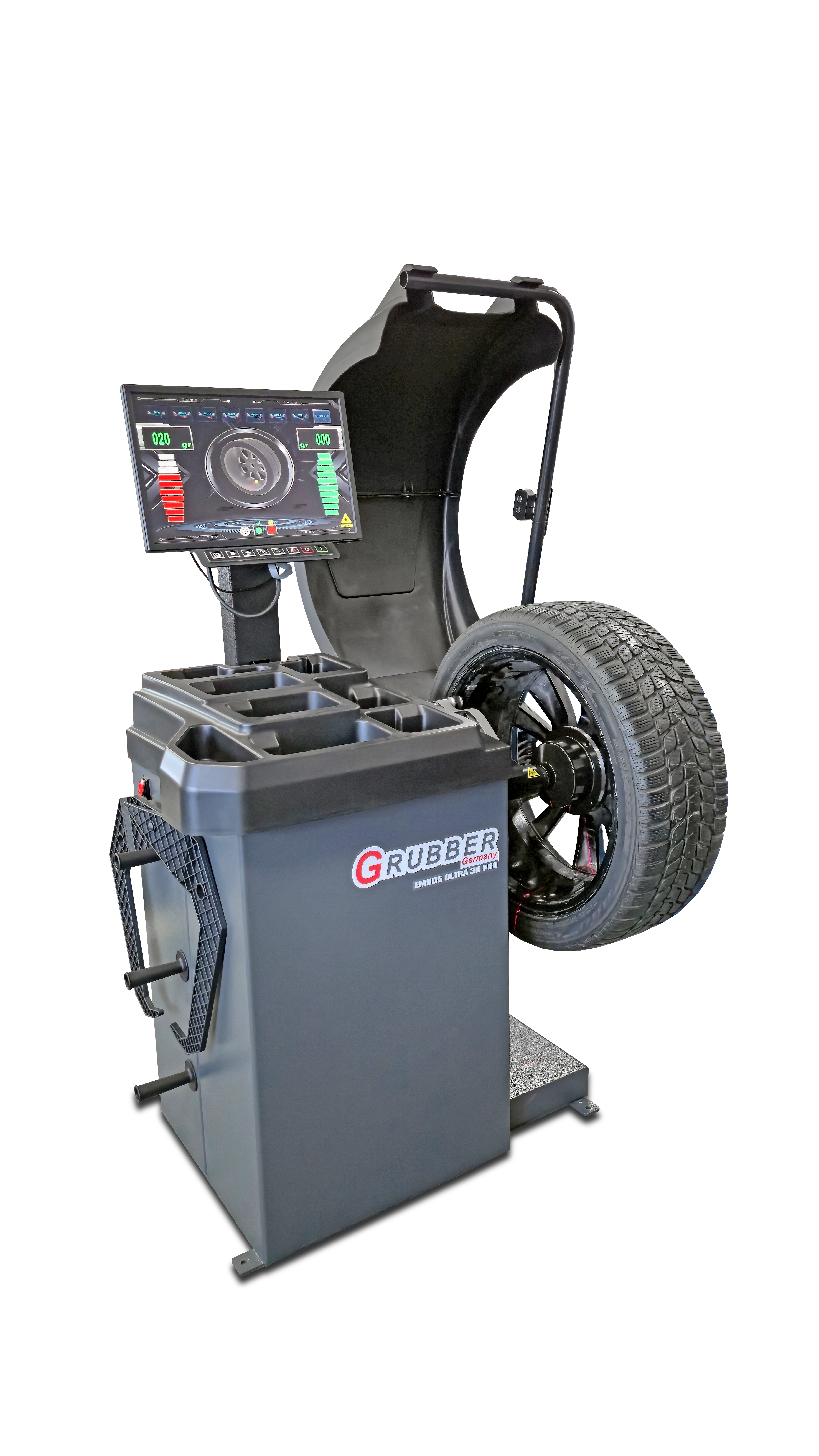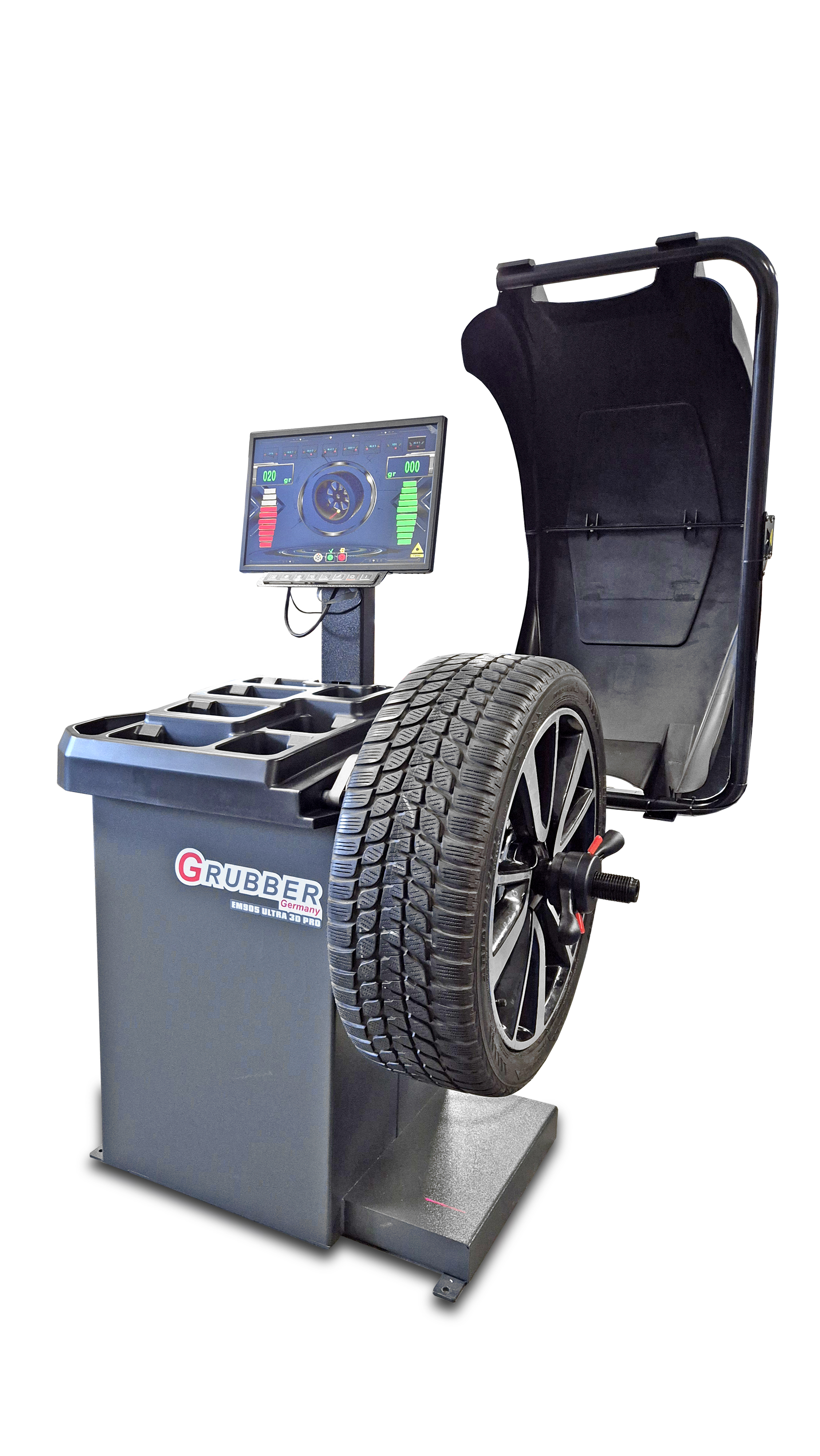 Automatyczna wyważarka GRUBBER EM905PRO to najnowszy i najbardziej zaawansowany model renomowanej niemieckiej marki Grubber. Przeznaczona do wyważania kół samochodów osobowych i lekkich dostawczych, oferuje najwyższą precyzję oraz intuicyjną obsługę.